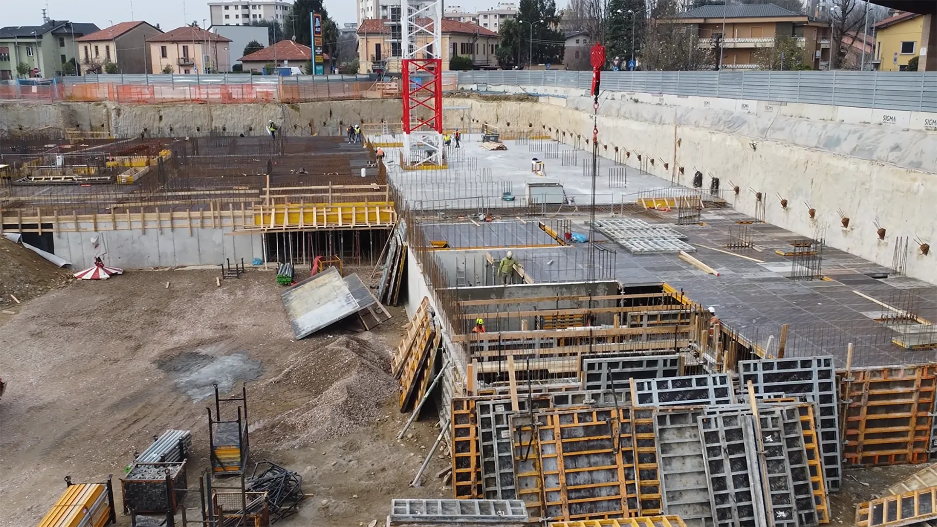Si prepara il prossimo grande passo nel cantiere di Torre Parko: prende forma il getto del solaio del piano interrato.